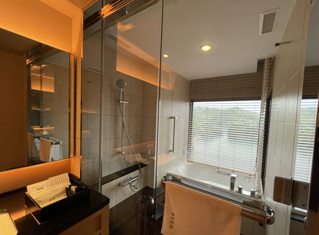 部屋には外を眺めるながら入力できるバスルームがありました。